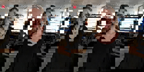 Okay, I know I said earlier that you’d be able to do all these things at your desk, and if you have a standing desk, then my previous statement still stands, but we should take advantage of the times we are up and moving, right? Here’s a simple exercise to engage your calves, feet and legs. Maybe you just sent something to the printer, or you're waiting for the new coffee machine to whip out your mocha latte with a shot of hot chocolate. Here’s a perfect opportunity to fit in some calf raises. No slouching, check your posture, stand tall and engage your core, that will help your balance as well! Lift your heels as high as they go, making sure to push up evenly with your foot, not the outer edges or just your big toe, hold for a beat and slowly lower your heel down. Do as many of these as your coffee break permits or until you feel a good burn.