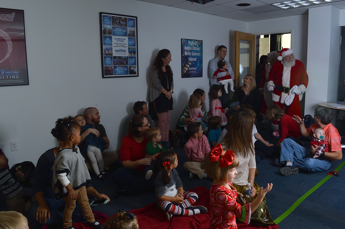 Our Cookies with Santa event kicked off with our President, Harris Pezzella who donned his Marathon Christmas hat to sit and read "The Night Before Christmas" to all the children. Just as he finished the story, "... and to all a goodnight!" Santa and Mrs. Claus arrived and surprised everyone! Pictures, crafts, sweets, and good cheer ensued with everyone having a great time. We even had some time towards the end for the Marathon Man to get in a visit with Santa too. Kudos to all of our Marathon team who helped make this event a success, it's quite possible this could become an annual thing!
