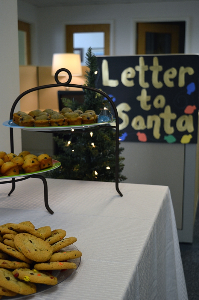 It all started with this marvelous, festive idea from our office manager, Stacey Bradshaw. “Let’s host Santa Claus and invite all our Marathon children to come for cookies, pictures, and to tell Santa what they are wishing for Christmas!” Stacey enlisted the help of Cindy Vartuli, our Administrative/Marketing Assistant, and Erin Mullinax, a Senior Designer and our resident photographer, to help with planning the perfect event to kick off our holiday season. As they set about with planning and shopping, the idea grew into something magical.
