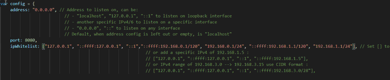 - If your network is different from 192.168.0.X or 192.168.1.X then please update the ipWhiteList value accordingly.